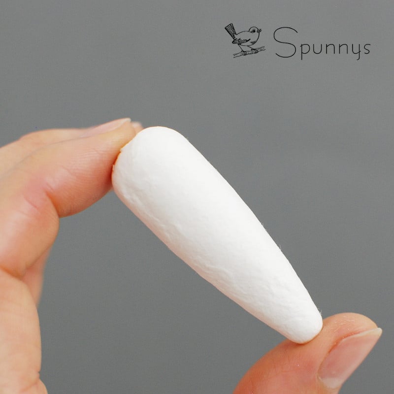 Blank spun cotton carrots. Several sizes available, each size has a different style. The shapes can also be used as trees.